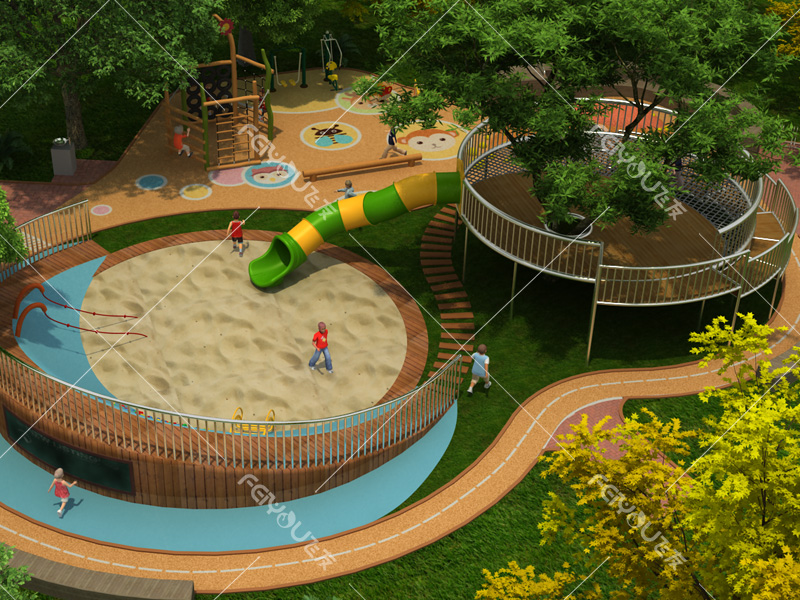 本設計是典型的“叢林游樂場”,一個讓兒童向往的兒童活動場地,配備不同的游戲設施,満足各年齡層的兒童活動需求,培養幼兒間的交流與協作能力。