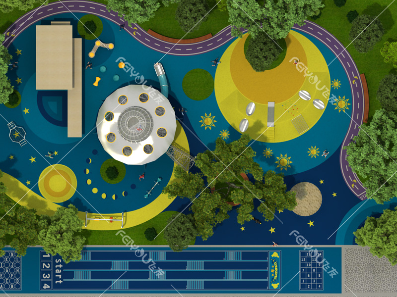 本設計以“UFO”造型鉆網為中心,輔以滑滑梯、秋千、蹦床、微地形,培養幼兒鉆、爬、滑、晃等能力,為幼兒打造全方位的游戲體驗