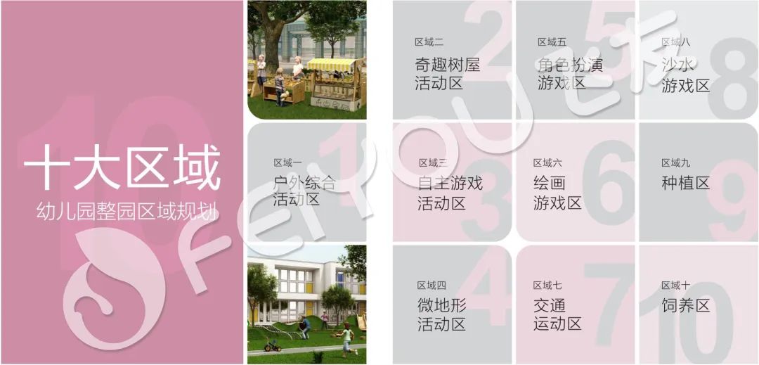 飛友整園定制將幼兒園分為十大區域。幼兒的活動區域環境具有游戲性特征,幼兒在區域中的學習與活動往往以自主...
