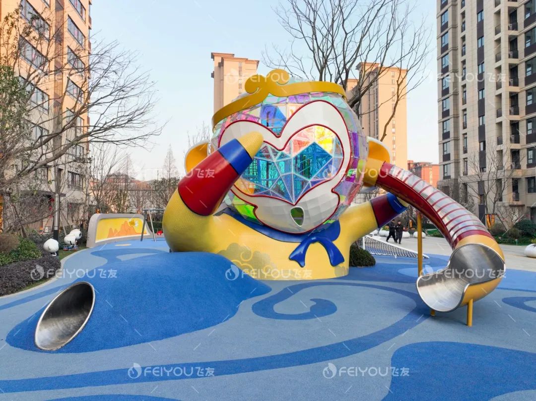 位于揚州金地華著小區內的悟空樂園,中心位置矗立著一座獨特的悟空組合滑梯。它右手高舉,目光遠眺,仿佛在與小...