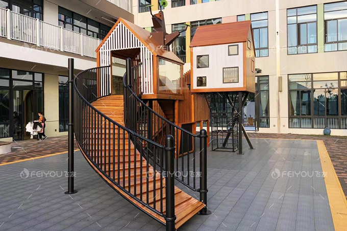 2、木質游樂設備還有一個特點是其他游樂設備所不能比的,那就是環保,與兒童皮膚接觸不會刺激皮膚,對于小朋友來說是非常的友好的。木質設備一般會用到防腐木,其使用年限較長,維護簡單,相比其他設備更加的實用方便。