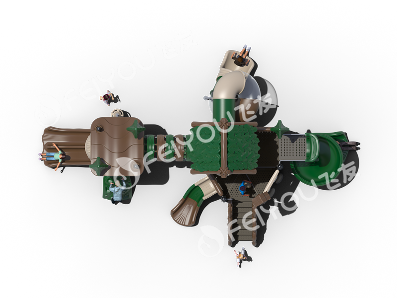 | 產品尺寸 | 筑夢森林組合滑梯FY203-02 外形尺寸:677*496*400cm|使用年齡段:3-12歲 |