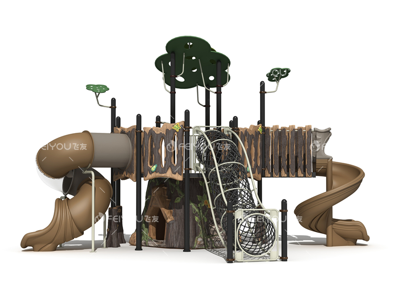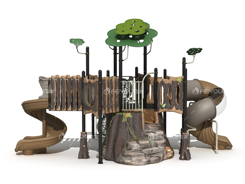 叢林穿越系列組合滑梯采用全新工藝,視覺自然生態,取代玻璃鋼,高性價比更環保